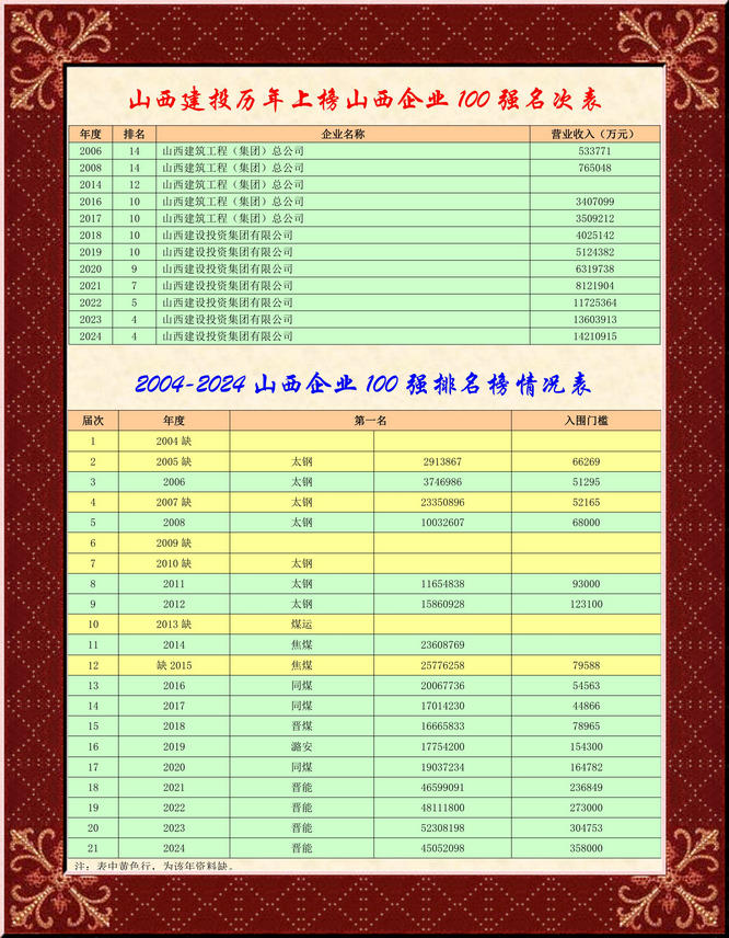 4 山西建设投资集团有限公司 14210915 13603913 4