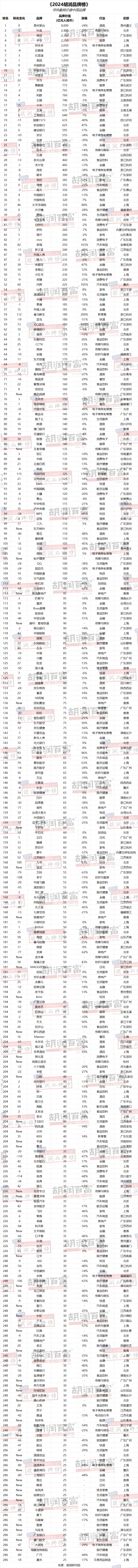 2024胡润中国品牌榜