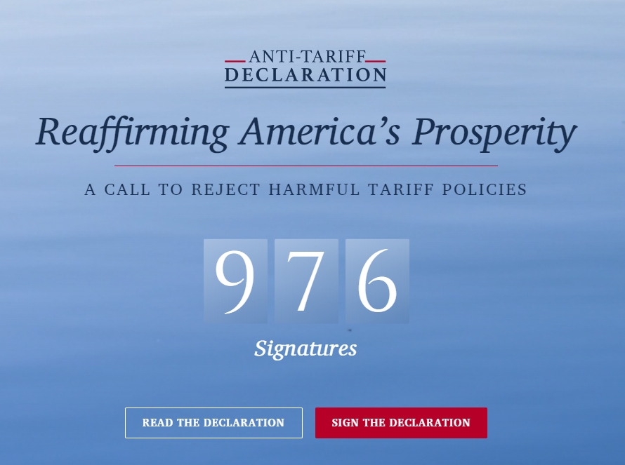 “反关税宣言”补充说:“我们仍然希望,健全的经济原理、经验证据以及历史的警示,将战胜当前的保护主义神话。”