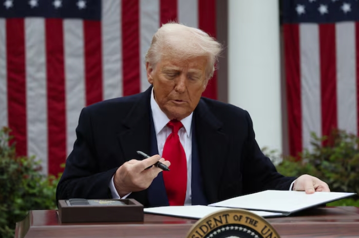 4月2日,特朗普签署关税行政命令。路透社