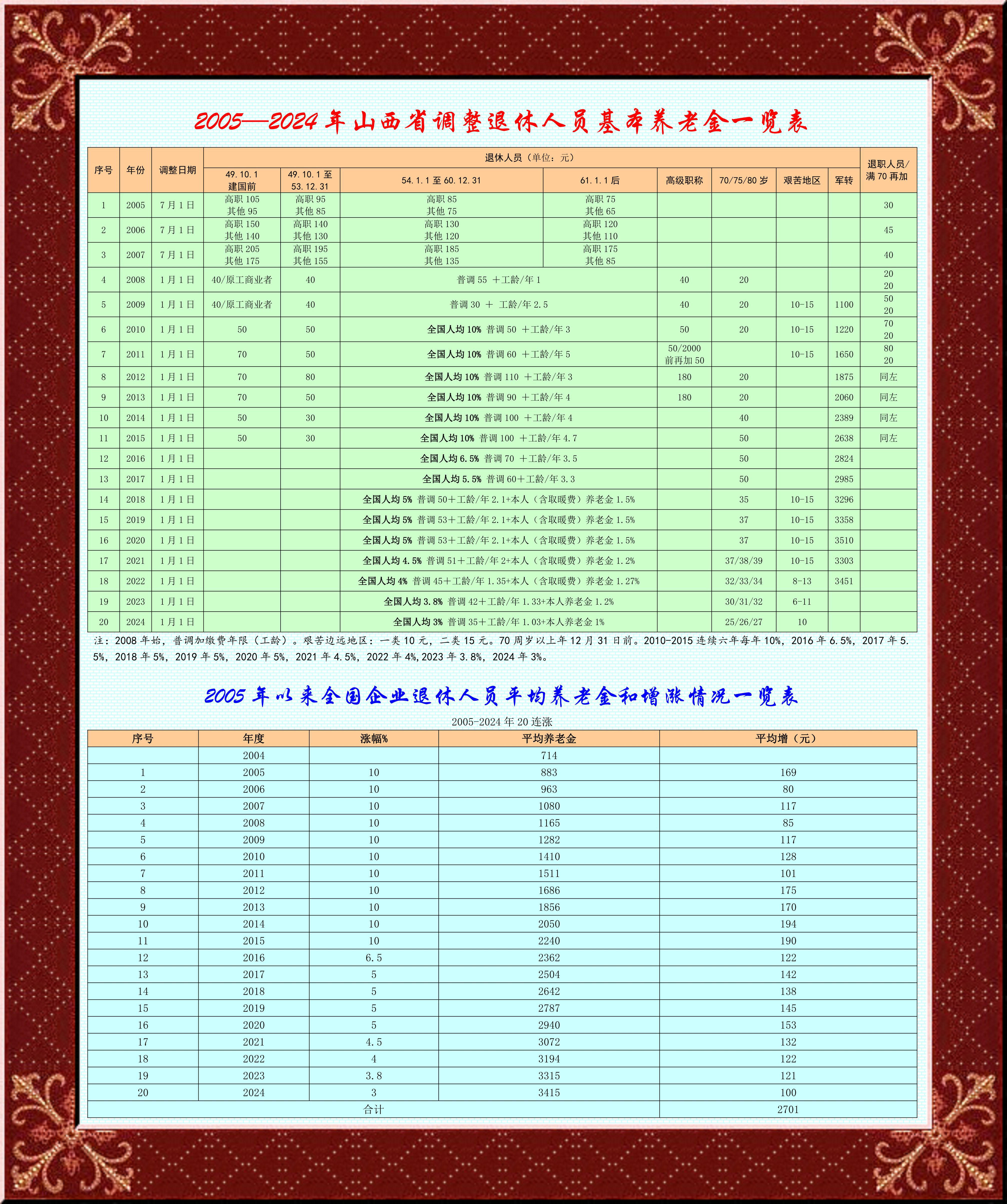 山西省的退休养老金调整,近年来都是统一按照定额调整、挂钩调整与倾斜调整三部分来进行。