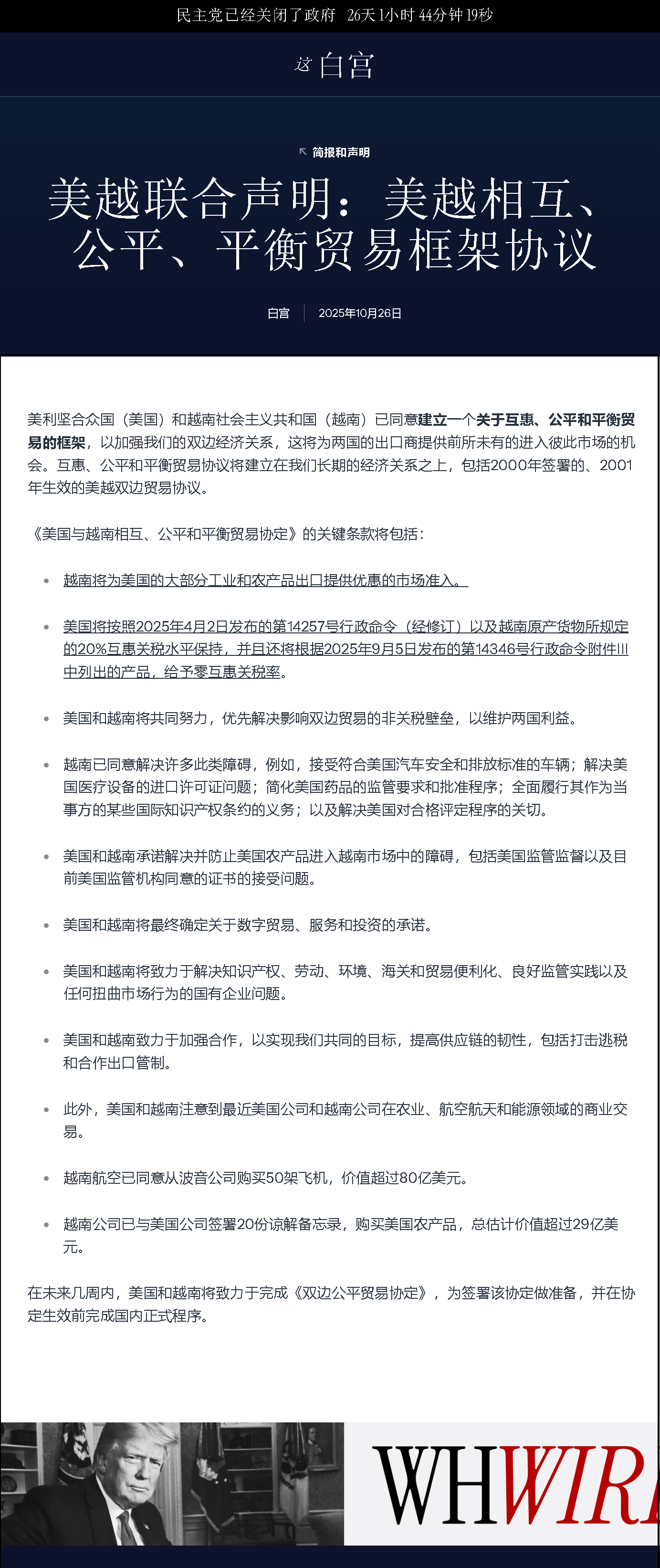 尽管美方声称达成了一份“公平”的贸易协议,但仔细观察就会发现,越南的妥协似乎并没有换来足够的回报。越南几乎放开了所有领域的市场准入,以换取美国不再追加关税,这样的交易明显失去了一定的合理性。对越南而言,这是一次高风险的赌注,未来的走势仍然扑朔迷离。