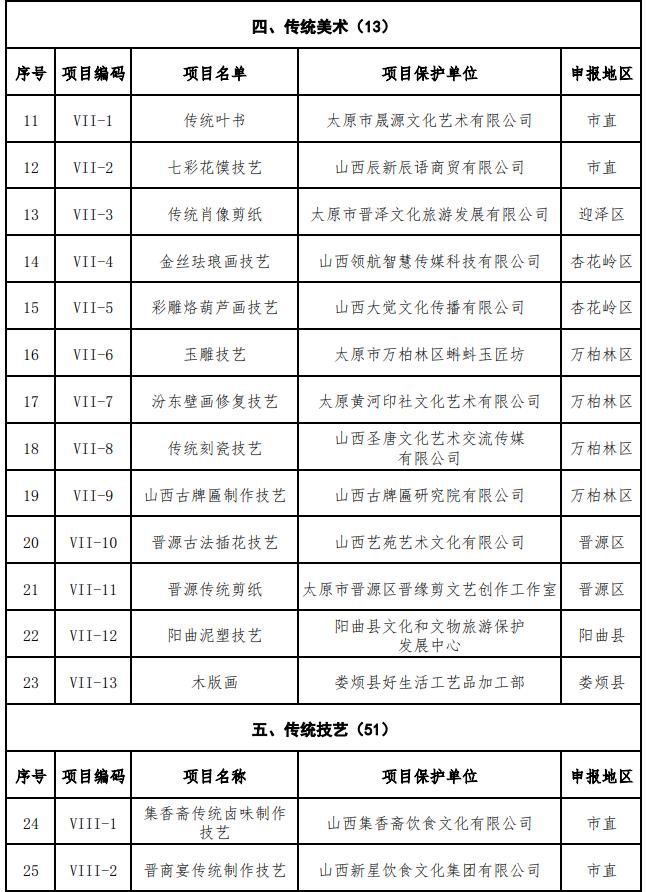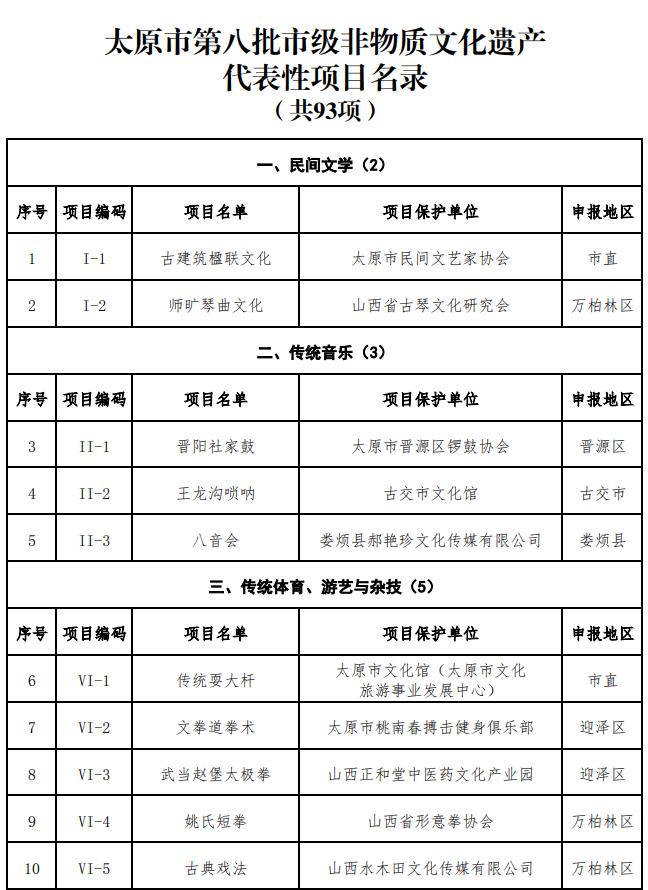 太原市第八批市级非物质文化遗产代表性项目名录