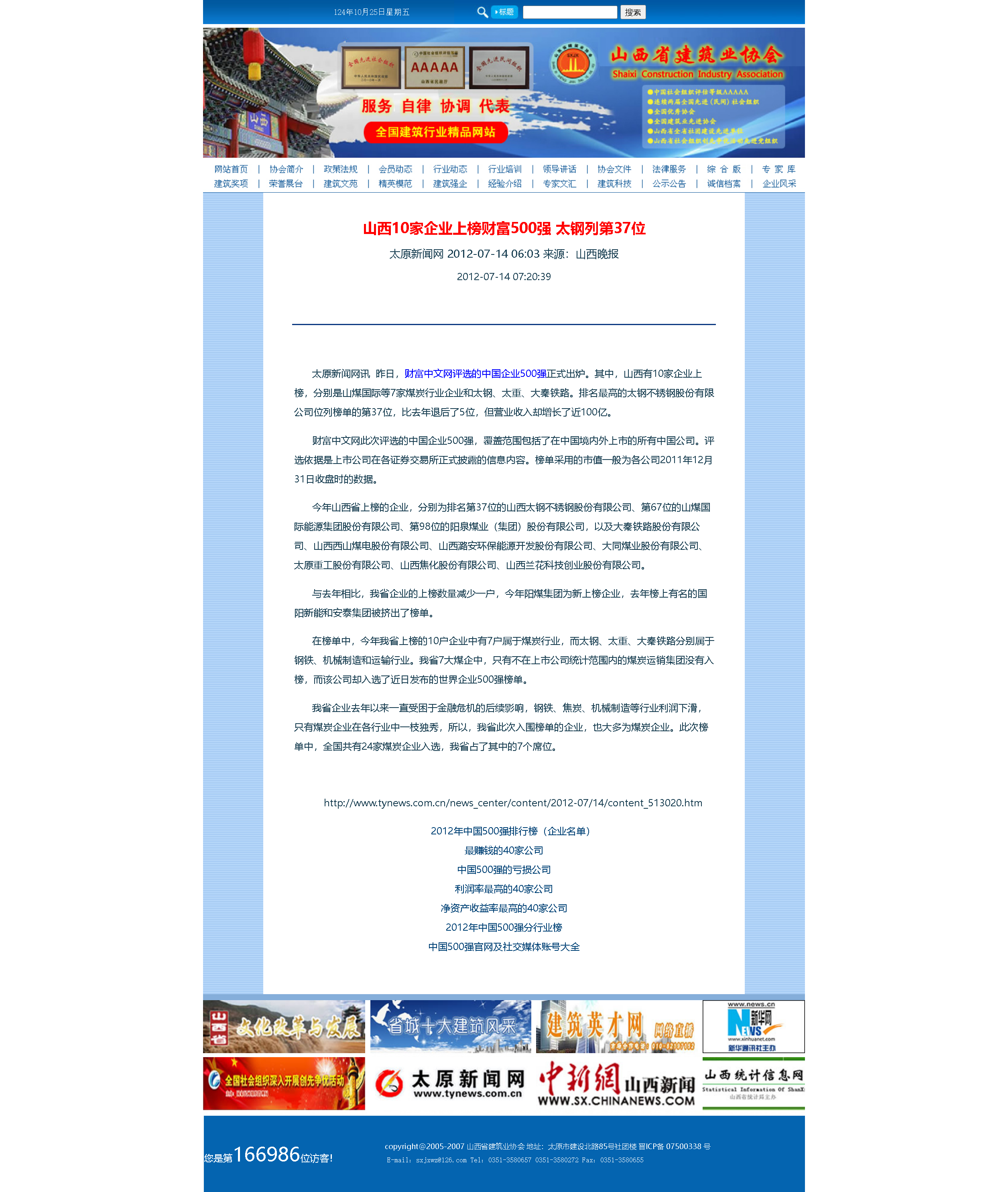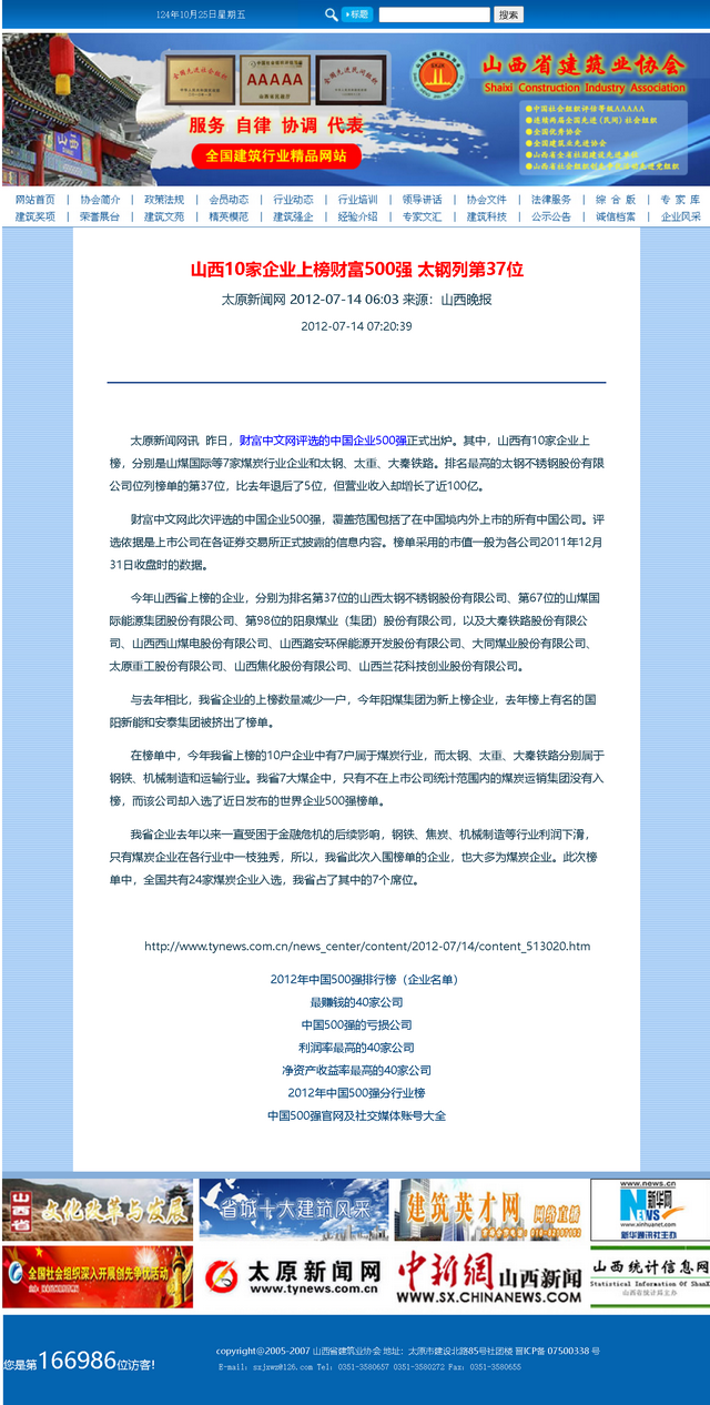 二十年前,第一次发现北方网世界500强专题报道这个栏目,激发起强烈的兴趣和爱好,由此一发而不可收。尤其是在建筑业协会搞网站,更是把关注重点放在分门别类的排行榜上,及时转载并且保存起来。