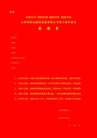 承诺书一式两份,总经理和承诺人各执一份,作为对未来的承诺和勉励!
