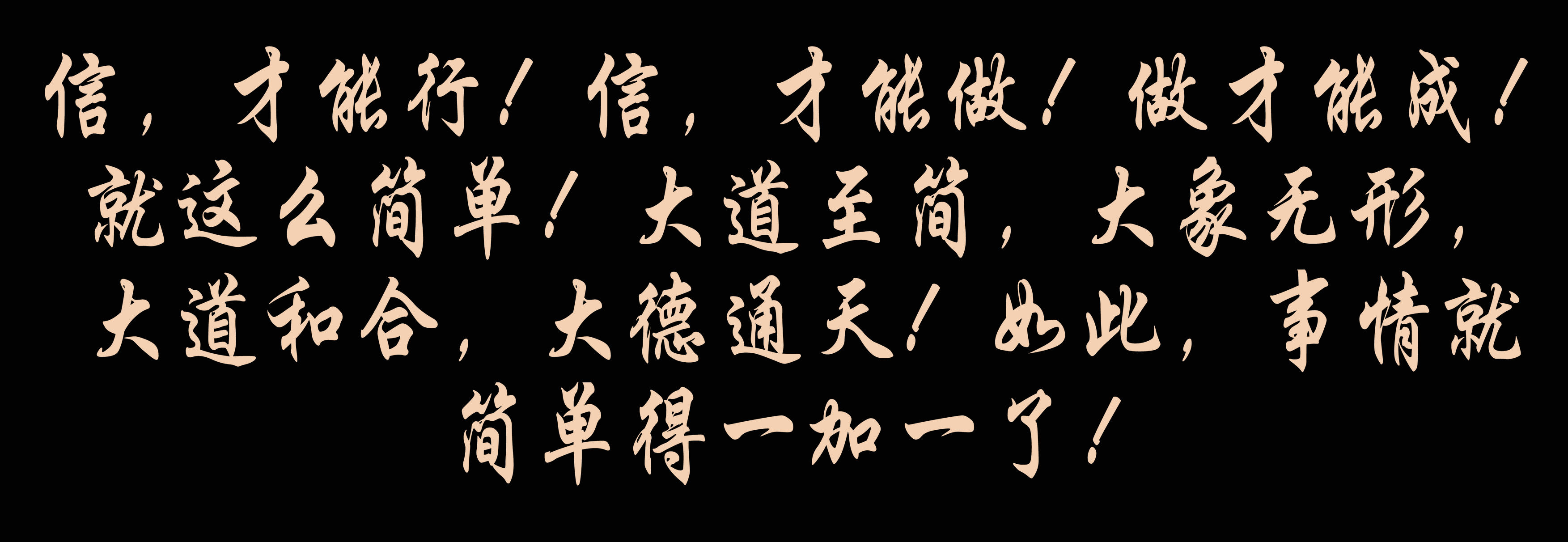 信,才能行!信,才能做!做才能成!就这么简单!大道至简,大象无形,大道和合,大德通天!