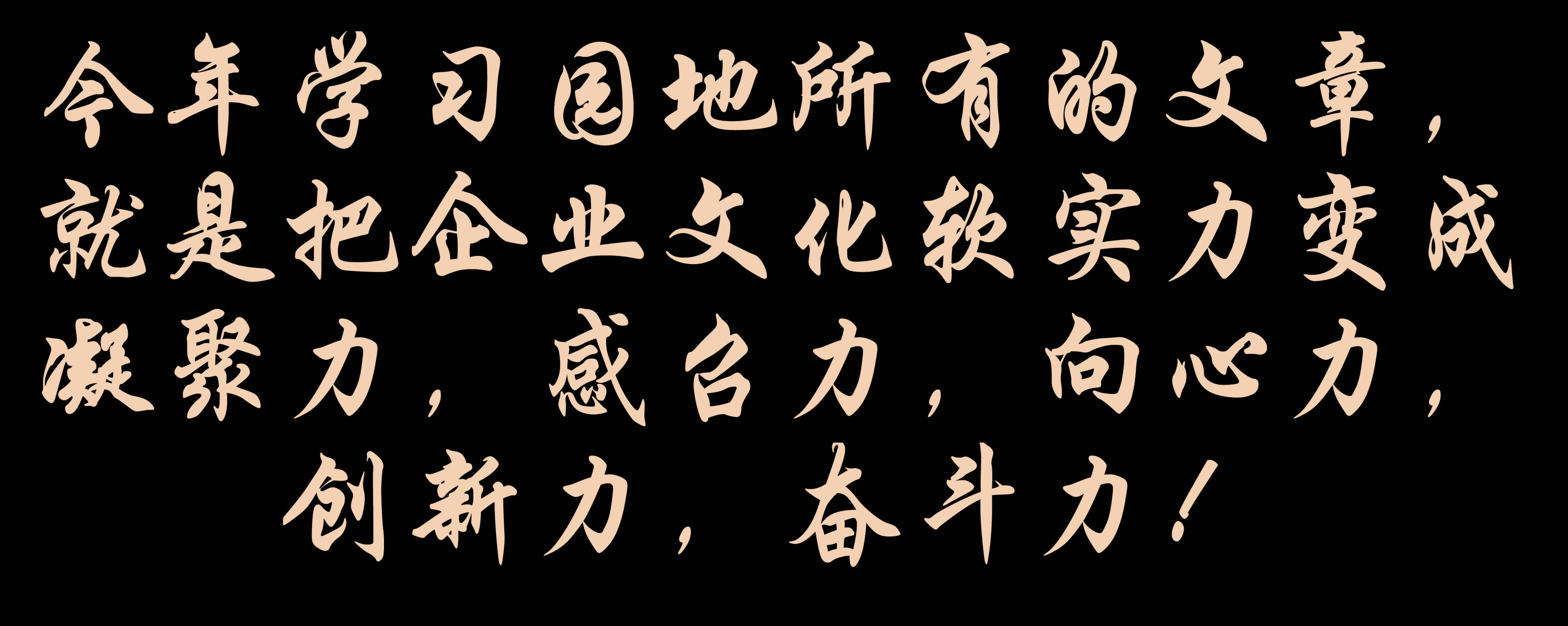 今年学习园地所有的文章,就是把企业文化软实力变成凝聚力,感召力,向心力,创新力,奋斗力!