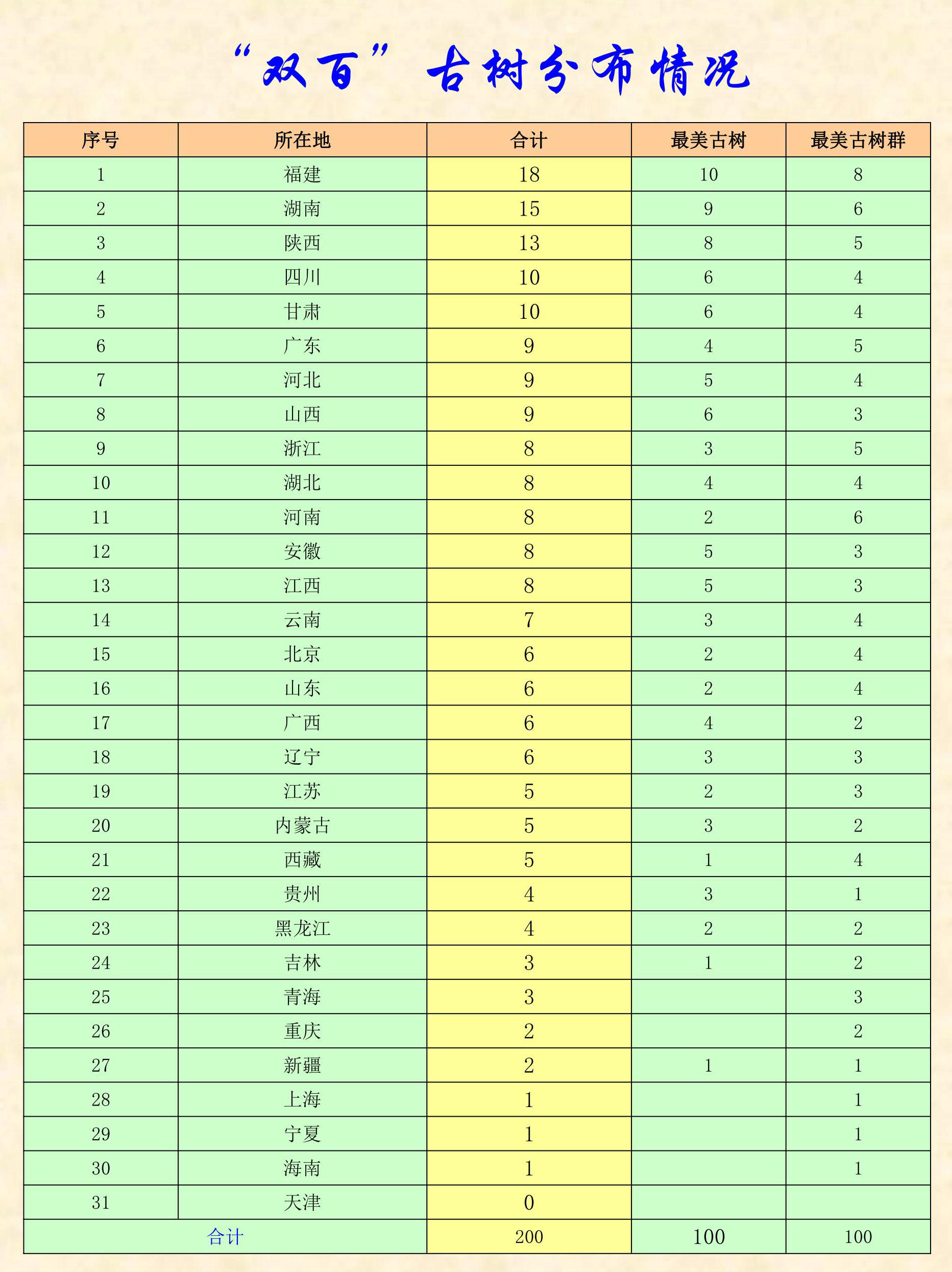 序号 名称 树龄(年) 位置 最美古树名称